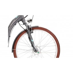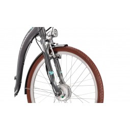 Le Grand eLille 1 posiada elektryczny napęd Bafang znajdujący się w przedniej piaście. Bateria zasilająca napęd elektryczny dla łatwego dostępu została umieszczona na tylnym bagażniku. Dzięki temu bez problemu zabierzesz ją ze sobą do naładowania bez potrzeby przenoszenia całego roweru. Cykl ładowania trwa około 4,5 godziny, a jej zasięg to około 100 km. Na kierownicy znajduje się pilot kontrolujący parametry jazdy oraz w jakim, z pośród pięciu dostępnych zakresów ma cię wspierać silnik. Odpowiada on także za sterowanie oświetleniem roweru, które domyślnie sterowane jest czujnikiem zmierzchu. Le Grand eLille 1 to doskonały wybór dla każdej nowoczesnej kobiety.