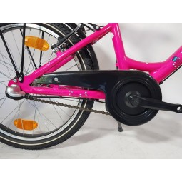 Rower dziecięcy z wyposażeniem: komplet oświetlenia, bagażnik, błotniki, podpórka, osłona łańcucha.