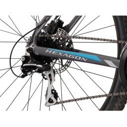 KROSS Hexagon 5.0 to doskonały wybór dla każdego szukającego roweru uniwersalnego. Sprawdzony napęd Shimano z 24 przełożeniami zapewnia bezproblemową i tanią eksploatację. Tylna przerzutka Shimano Acera M360 ułatwia zmianę przełożeń nawet w trudniejszym terenie oraz wymaga mniejszej uwagi niż niższe grupy. By zapewnić pewność hamowania w każdych warunkach wyposażyliśmy KROSS Hexagon 5.0 w hydrauliczne hamulce tarczowe, zapewniające większą siłę hamowania niż klasyczne hamulce v-brake. To także dużo większa i precyzyjniejsza modulacja siły hamowania niż w przypadku mechanicznych hamulców tarczowych.
