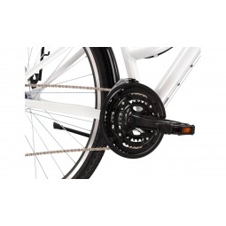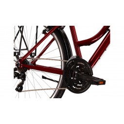 Kross Trans 1.0 to komfort i łatwość w przemieszczaniu się. Obniżona rama, bagażnik, oświetlenie oraz błotniki zapewniają uniwersalność roweru. Sprawdzi się on zarówno w rekreacyjnym jeżdżeniu po leśnych ścieżkach jak i w mieście. Dzięki zastosowanej geometrii możesz zająć wyprostowaną pozycję na rowerze, która zwiększy wygodę przy dłuższych wycieczkach za miasto. Rama jest dostępna w wersji kobiecej jak i męskiej dzięki czemu rower zawsze będzie dostosowany do twoich potrzeb.