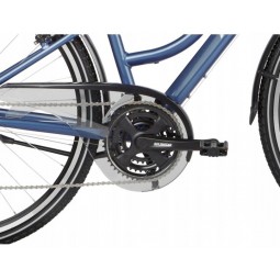 Kross Trans 2.0 to rower dla kobiet. Obniżona rama i specjalna geometria, hamulce V-brake, opony Mitas Gripper, tylna przerzutka Shimano.