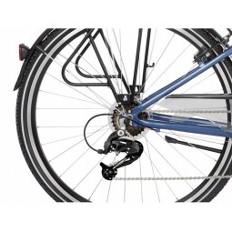 W Kross Trans 2.0 zamontowaliśmy hamulce V-brake, które zapewnią ci dużą siłę hamowania na asfalcie jak i na leśnej ścieżce. Opony Mitas Gripper o szerokości 1,6” pozwalają na stosowanie go w prawie każdych warunkach atmosferycznych i długą eksploatację. Ponadto zamontowaliśmy w naszym rowerze tylną przerzutkę ShimanoAltus M310, która jest łatwa w serwisowaniu.